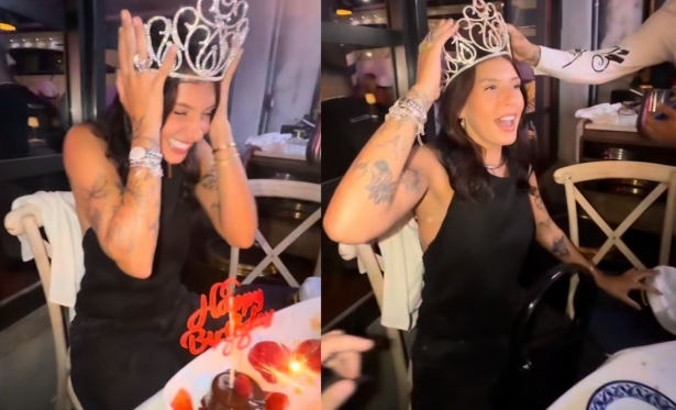 No vídeo compartilhado por Ana, é possível ver um garçom colocando uma coroa em sua cabeça, enquanto velas são acesas em uma sobremesa. Os amigos da boiadeira cantaram “parabéns” e a legenda o post explicou o motivo: “5 anos de carreira de Ana Castela”.