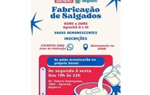 Fabricação de Salgados - vagas remanescentes em Registro-SP Quer aprender a fazer salgados e se qualificar? A Prefeitura de Registro-SP está com inscrições abertas para ○ ... 04/02/2026/ 12:37:36