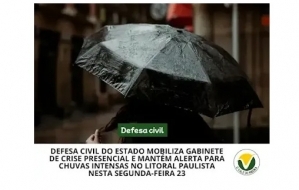 Defesa Civil do Estado mobiliza gabinete de crise presencial e mantém alerta para chuvas intensas no Litoral Paulista nesta segunda- feira 23